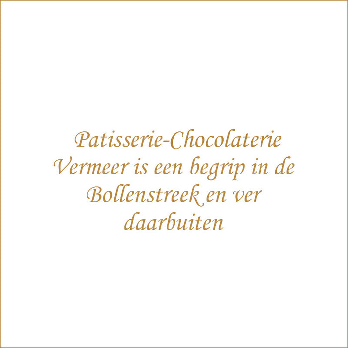 Patisserie Chocolaterie Vermeer is een begrip in de Bollenstreek en ver daarbuiten. Wie een bezoek brengt aan de Heereweg 155 in Lisse is al snel onder de indruk van de stijlvolle uitstraling. Door strakke lijnen en het vele licht binnen valt het oog direct op al het lekkers en moois: gebak, bonbons, bruidstaarten, kindertaarten, desserts en hartige specialiteiten.